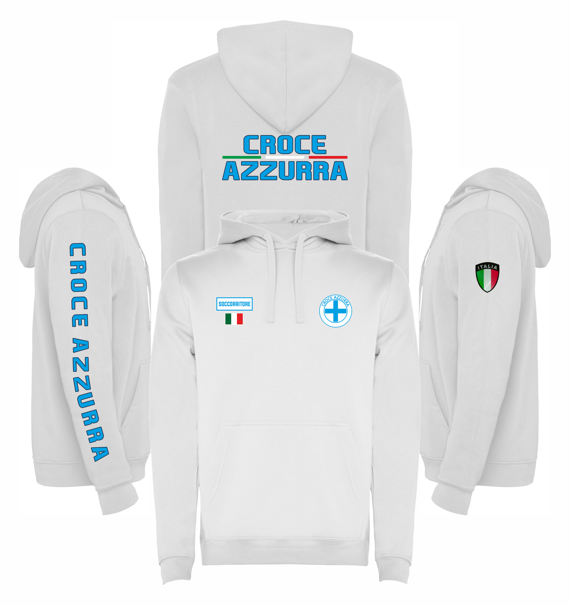 Felpa bianca con cappuccio della CROCE AZZURRA
