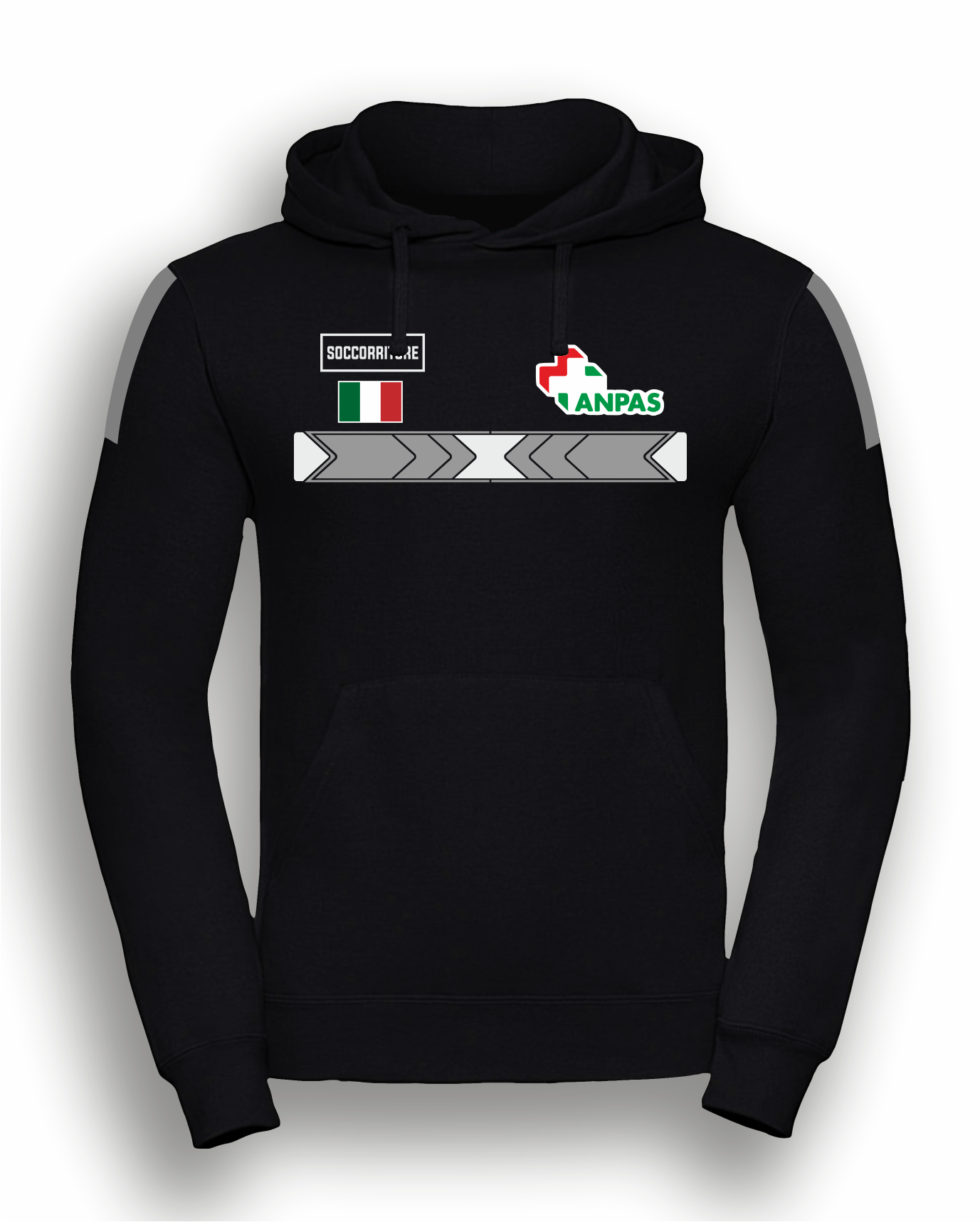 Felpa NERA con cappuccio ANPAS alta visibilità rifrangente