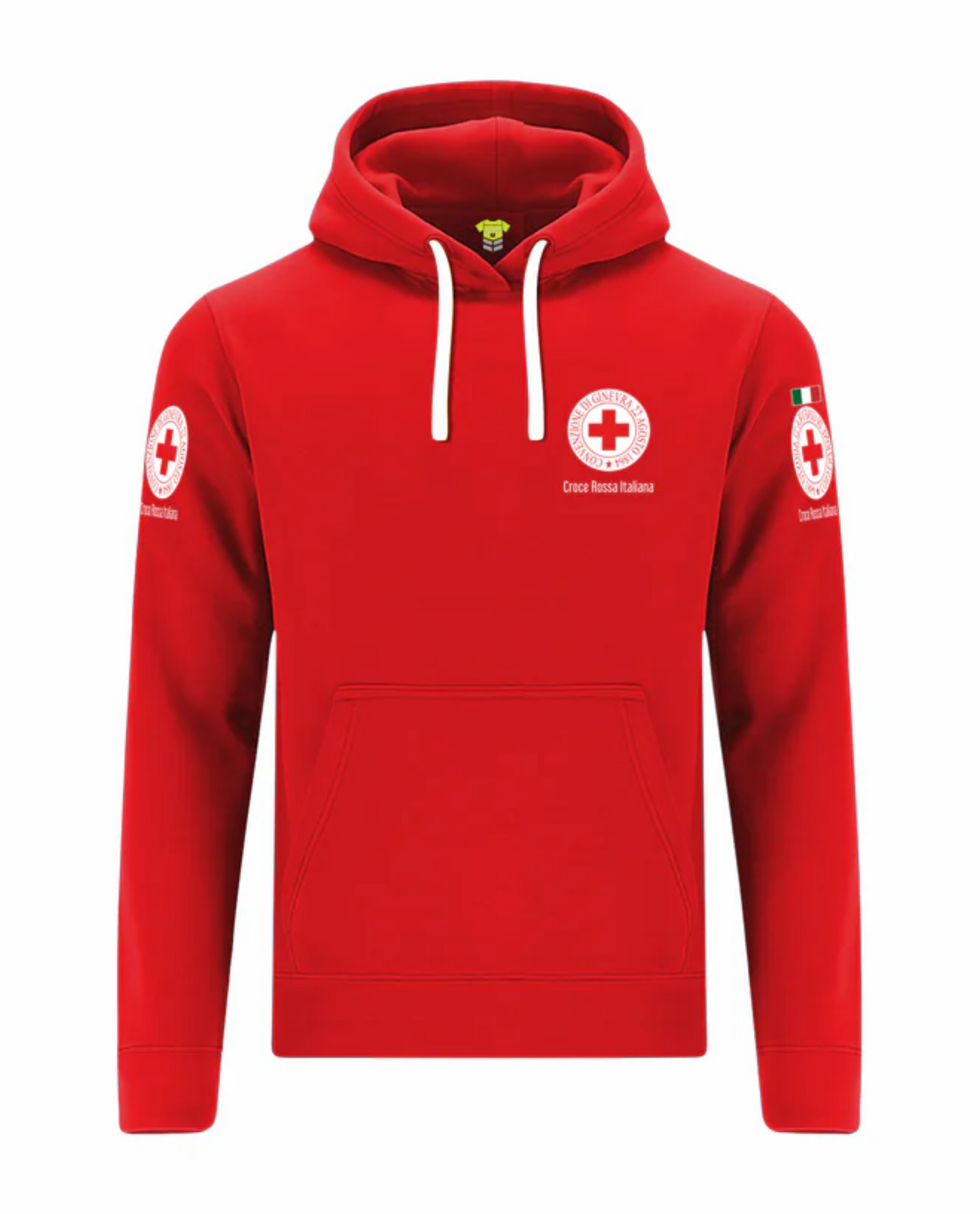 Resta caldo e alla moda con la nostra felpa cappuccio della Croce Rossa Italiana!