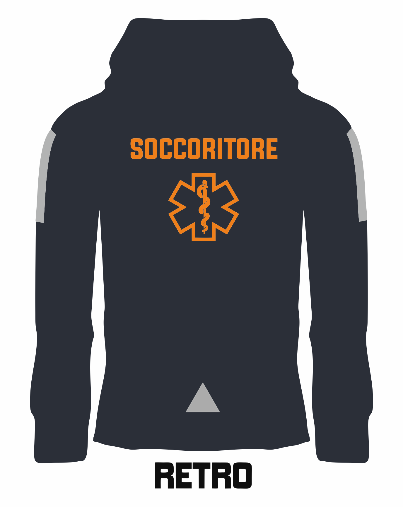 Questa felpa con cappuccio e zip è progettata appositamente per operatori del soccorso, unendo praticità e sicurezza. Realizzata in tessuto resistente e traspirante, è dotata di particolari rifrangenti con materiale certificato che garantiscono visibilità anche in condizioni di scarsa illuminazione. Il cappuccio regolabile e la chiusura full zip offrono protezione e versatilità.