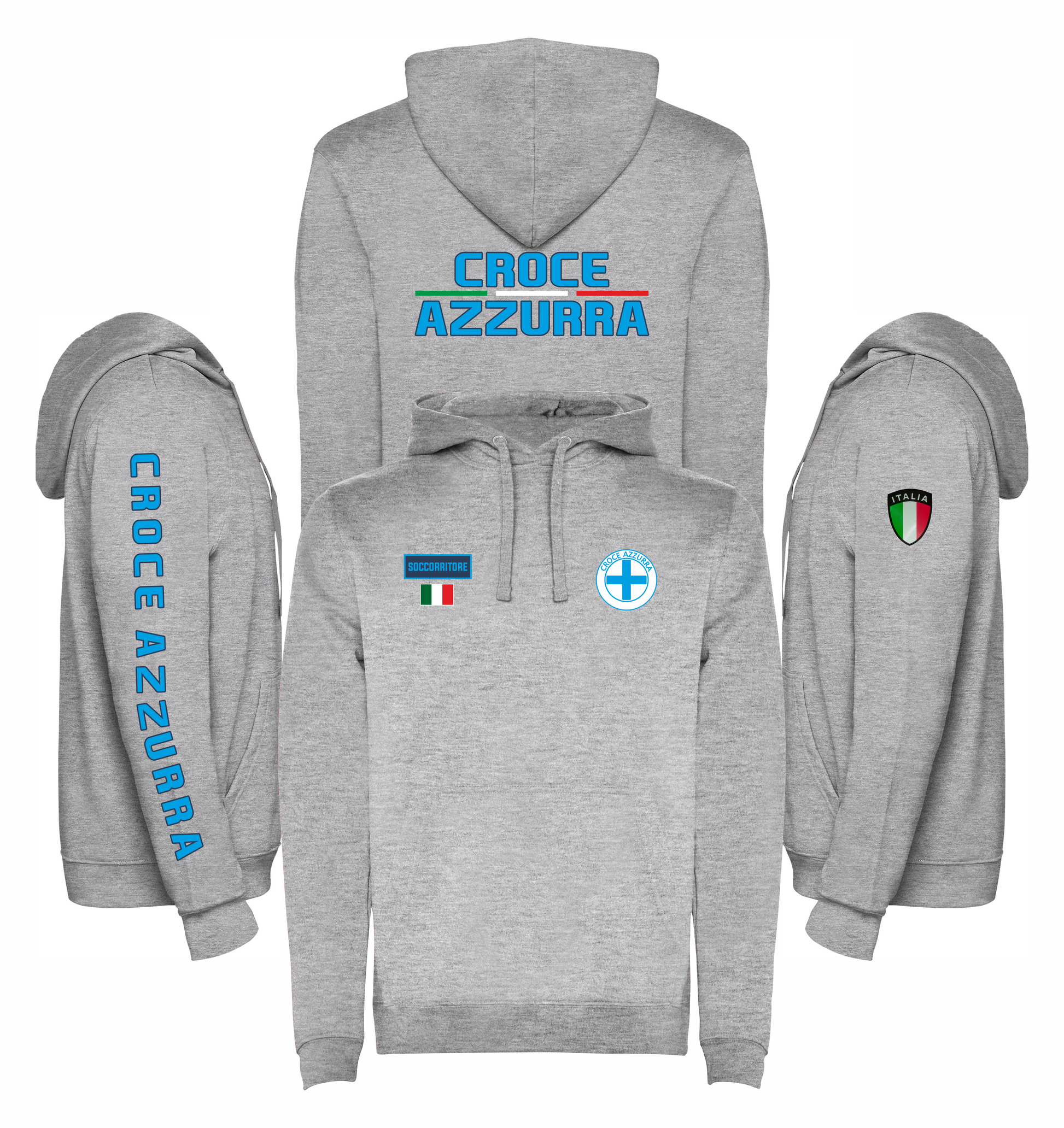 Felpa grigia con cappuccio della CROCE AZZURRA