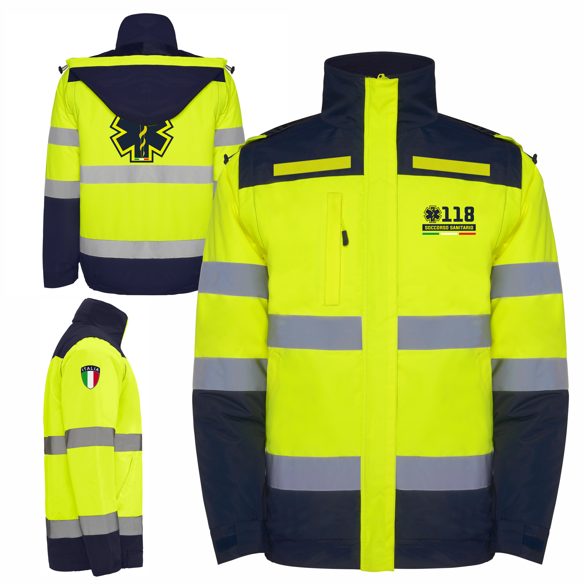 Certificato CE secondo le norme: EN ISO 13688:2013/A1:2021 EN ISO 20471:2013/A1:2016. EN 343:2019. Classe II. *Alta viibilità. *Modello resistente all'acqua *Modello antivento.