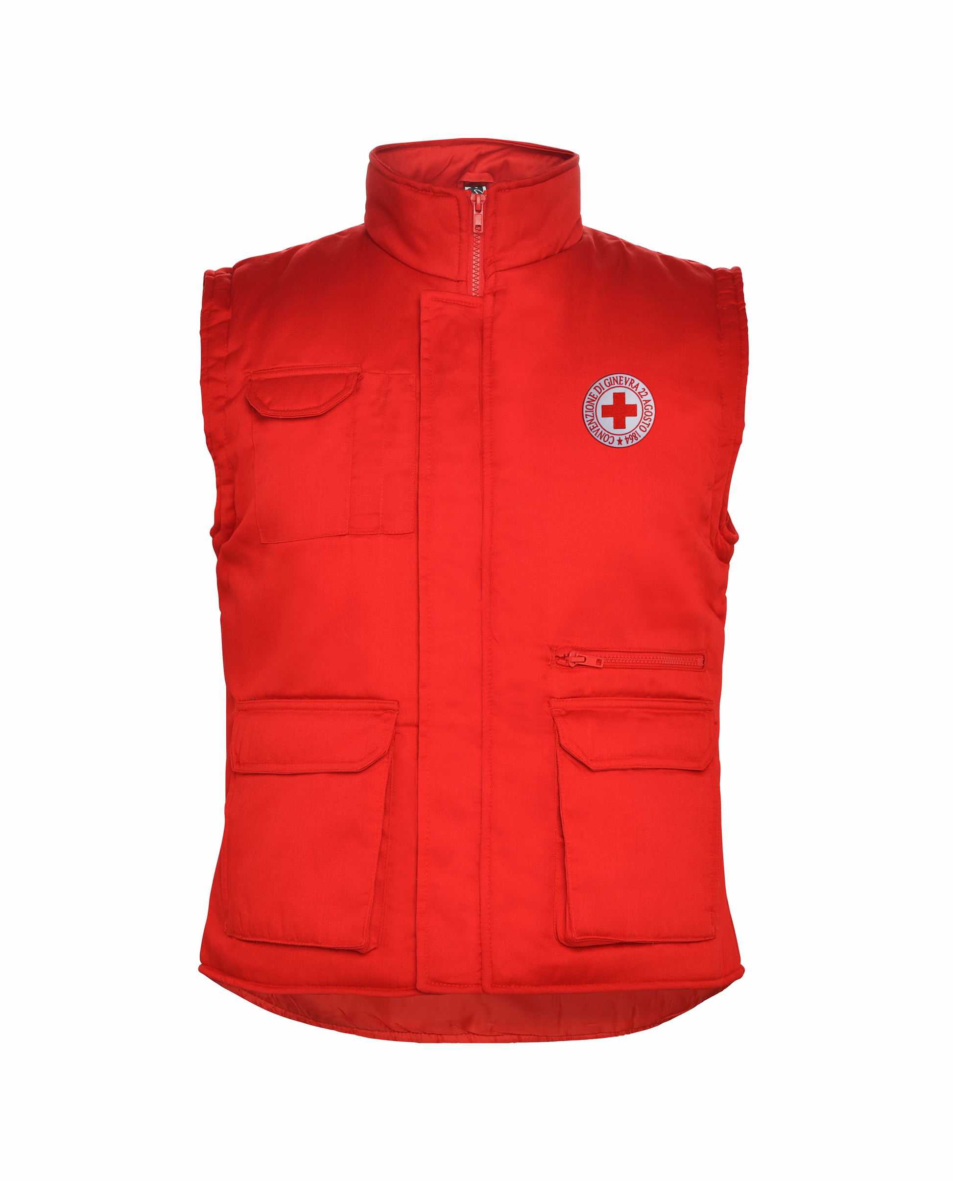 Gilet imbottito della Croce Rossa Italiana multitasche con collo alto.