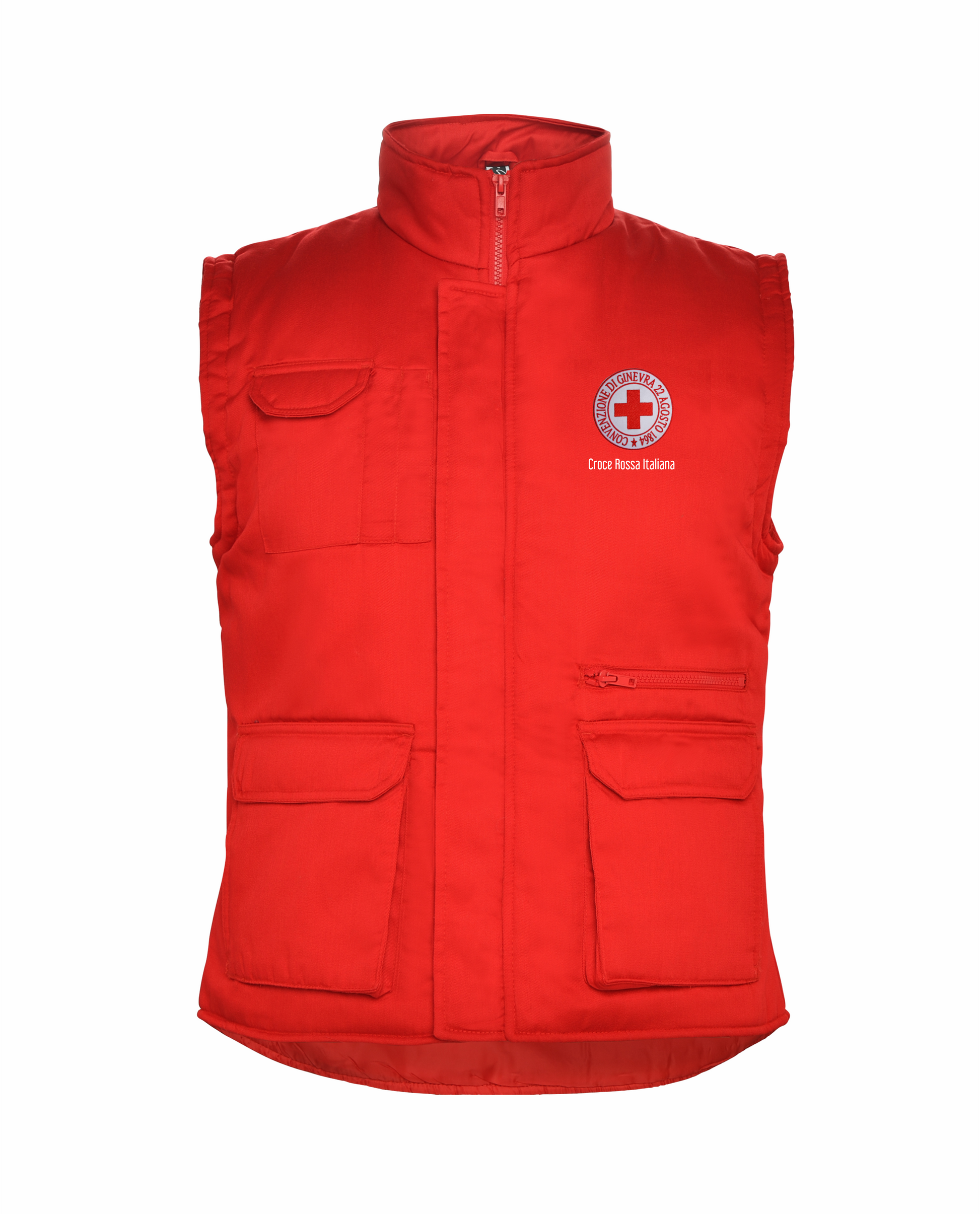 Gilet imbottito multitasche con collo alto.
