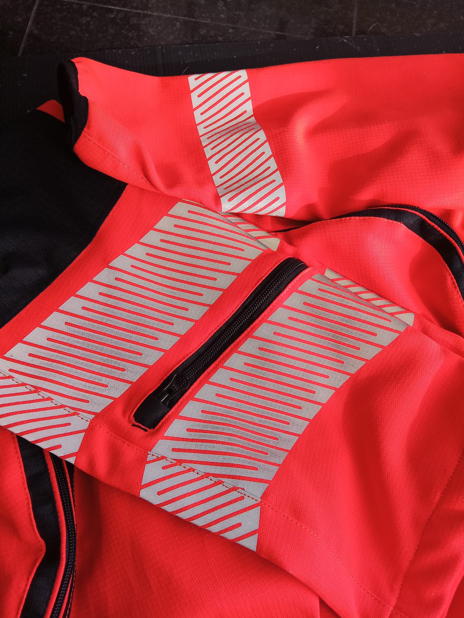 Il pantalone possiede 2 tasche con cerniera laterali e una tasca con cerniera altezza tibia gamba destra.