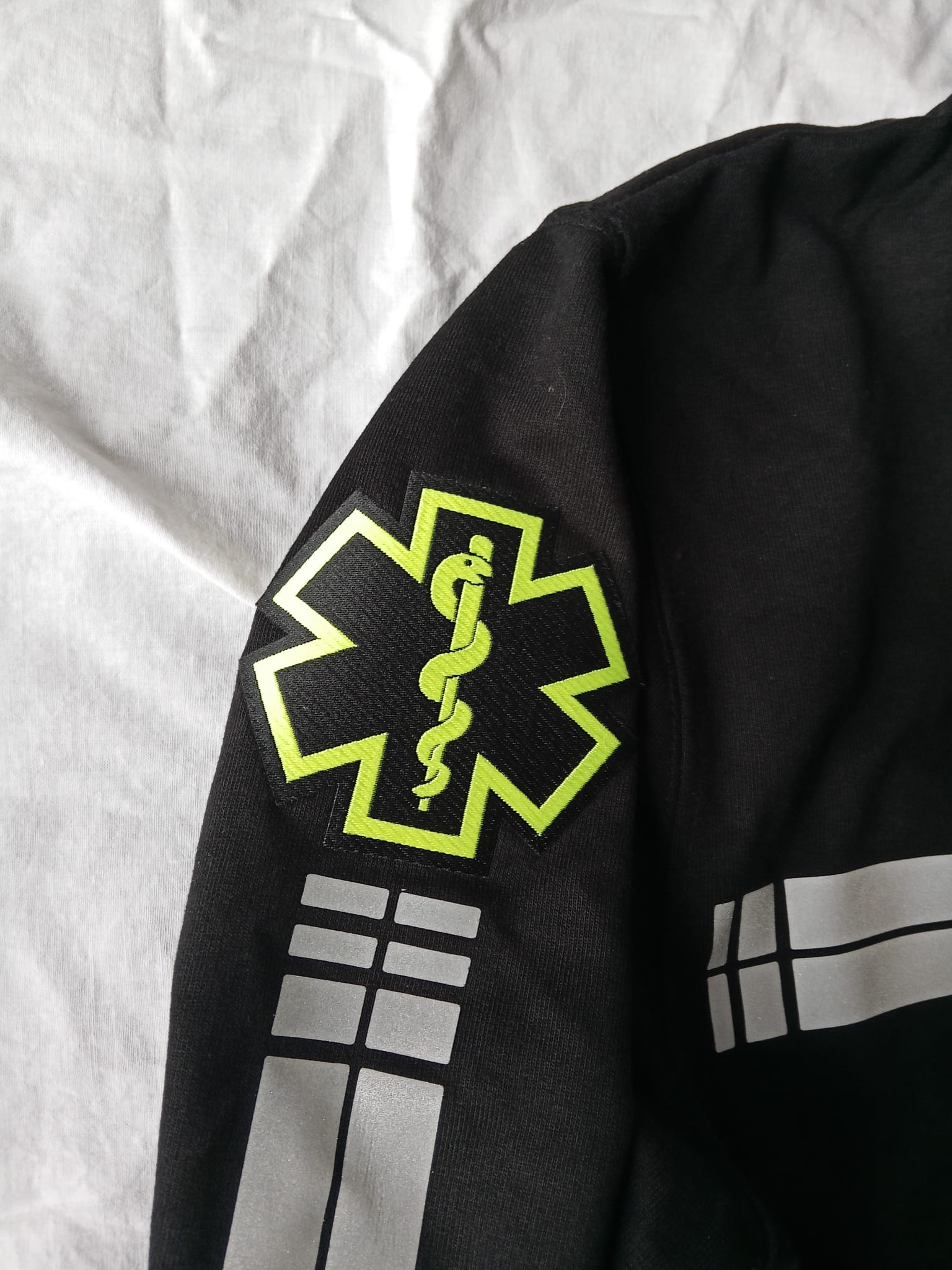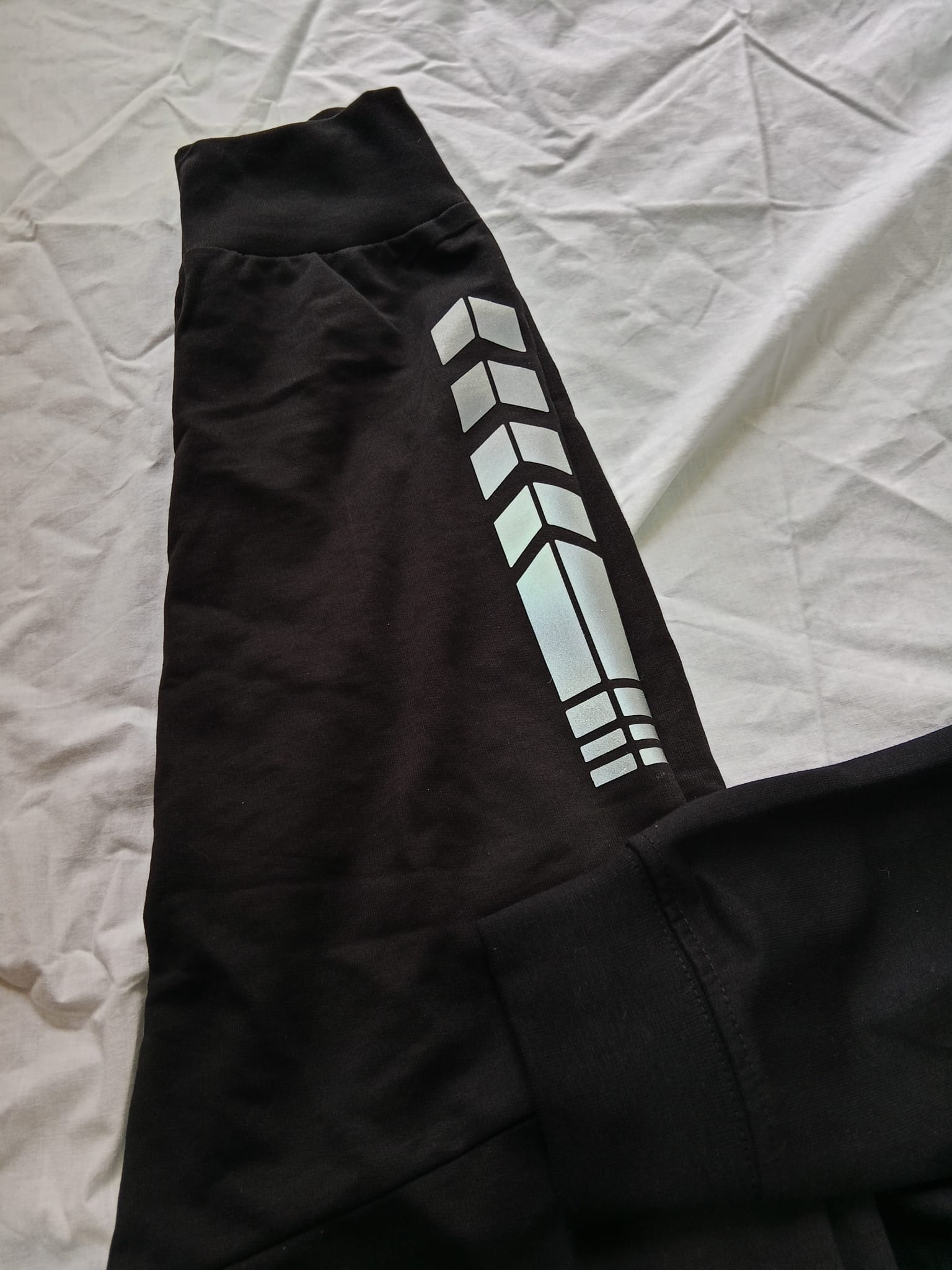 Bande seghettate rinfrangenti su maniche, petto, schiena e gambe. Loghi ricamati in ricami HD