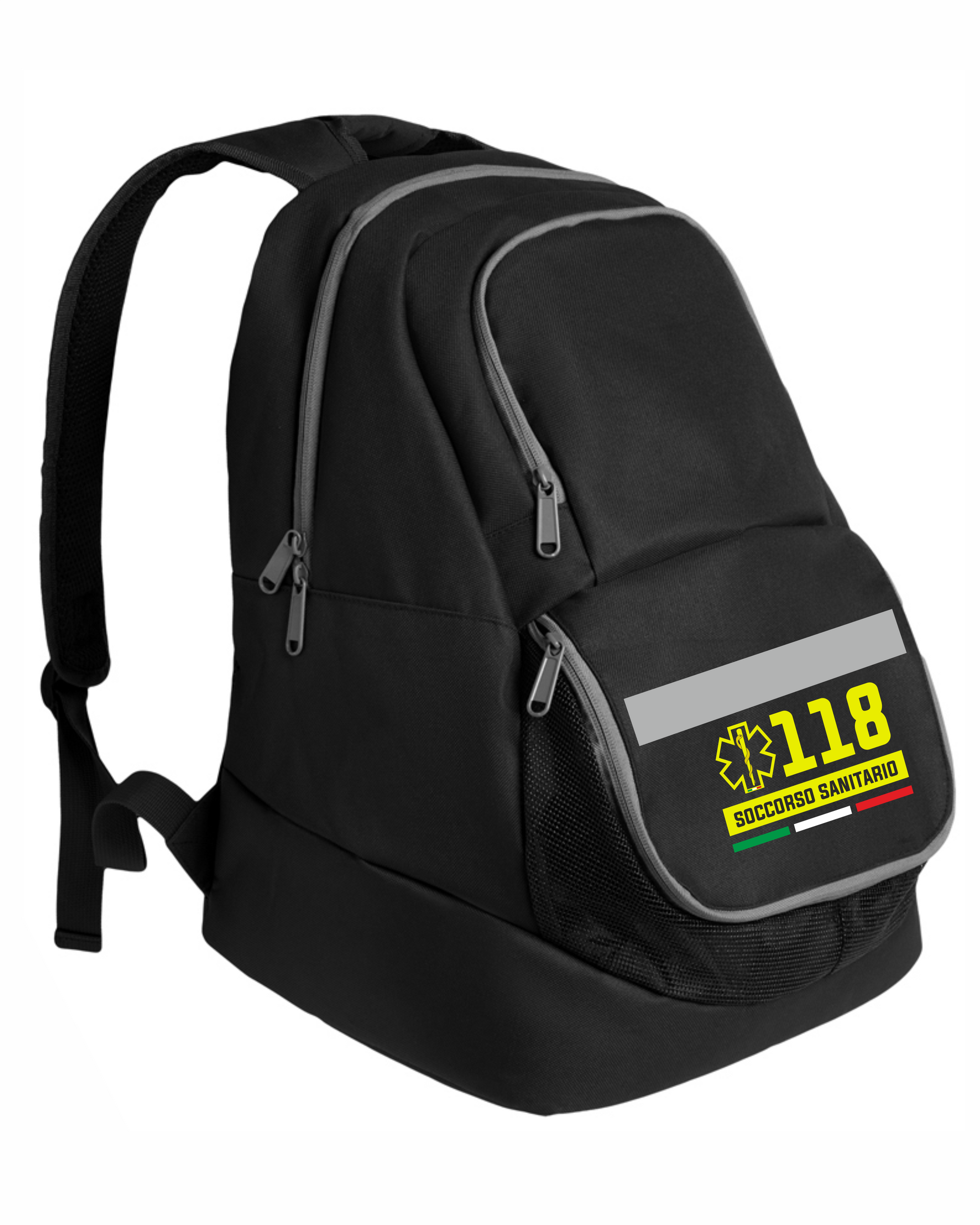 Lo zaino ha doppi spallacci rinforzati e cinghia speciale per le mani. - Lo schienale è imbottito ed ha una tasca anteriore, una tasca principale con doppio tiretto e una